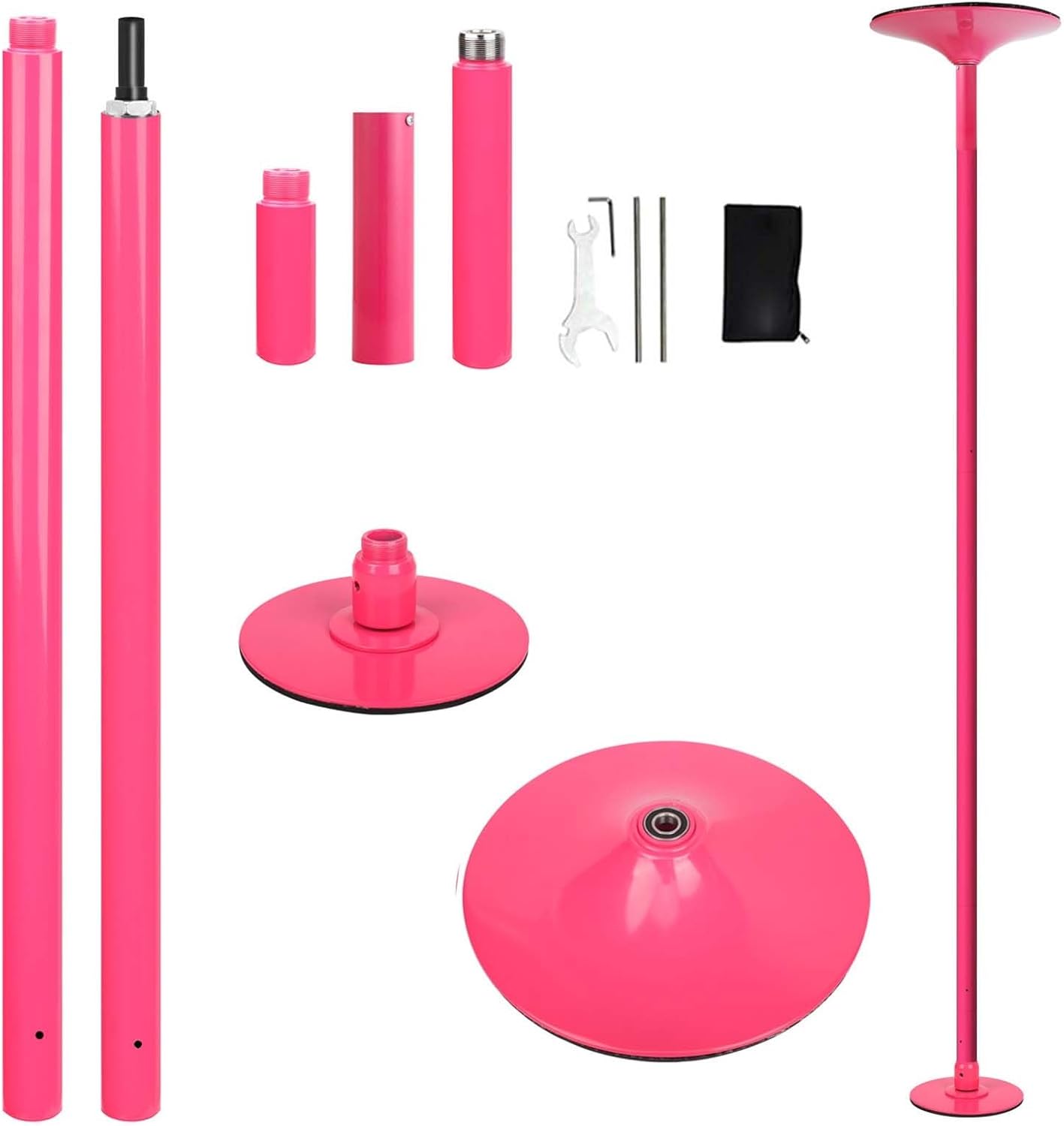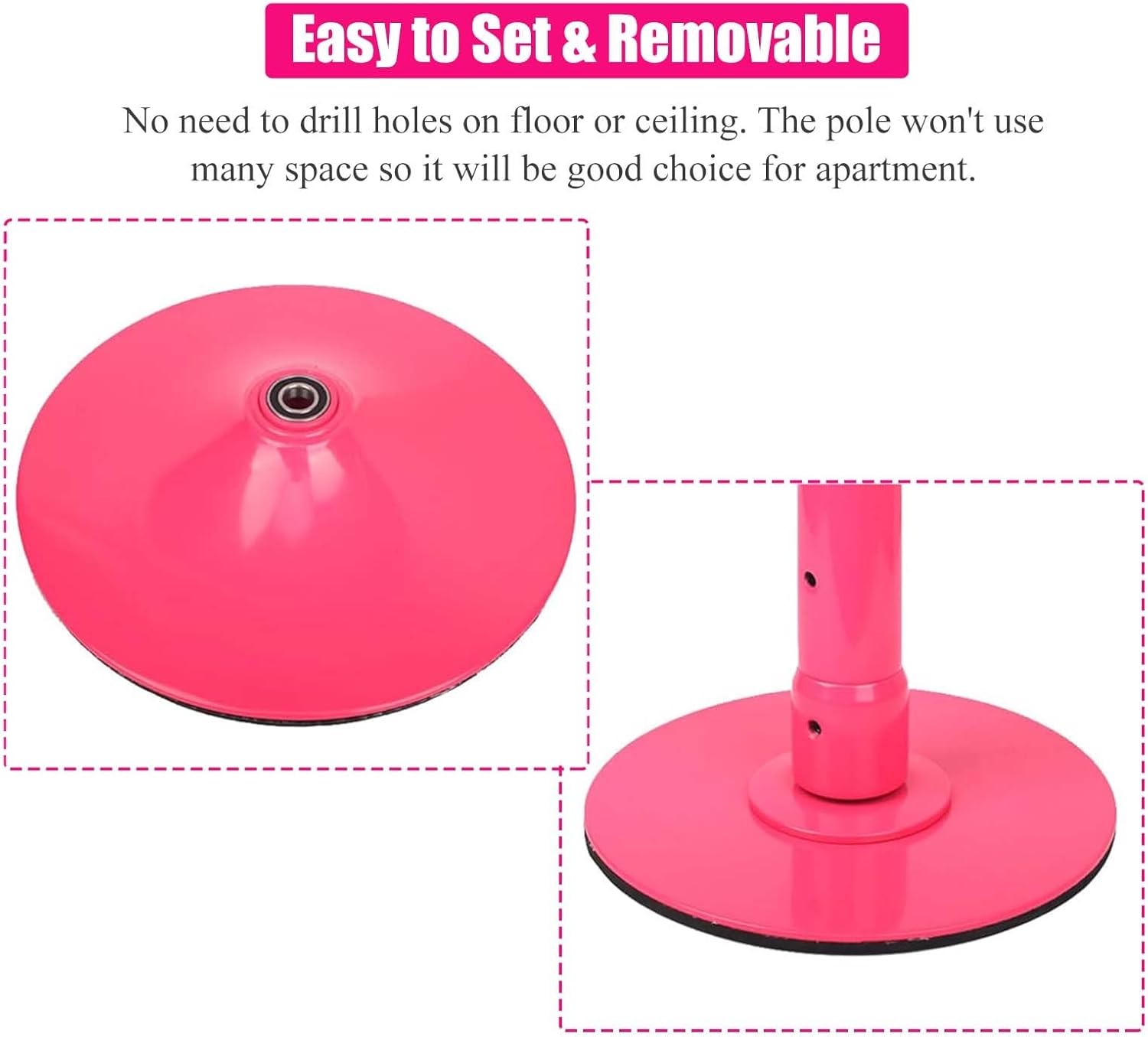 Barre de Danse et Pole Dance Rose Amovible sans Perçage – Entraînement à Domicile (Hauteur ajustable jusqu’à 2,74 m)