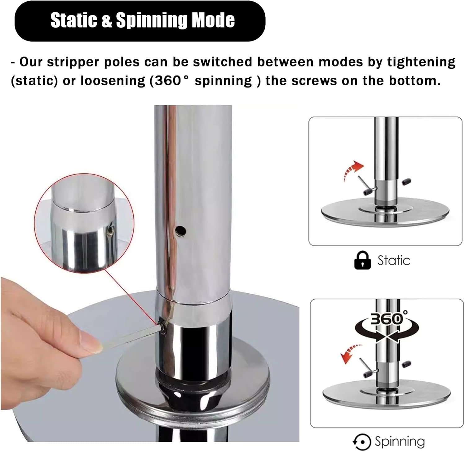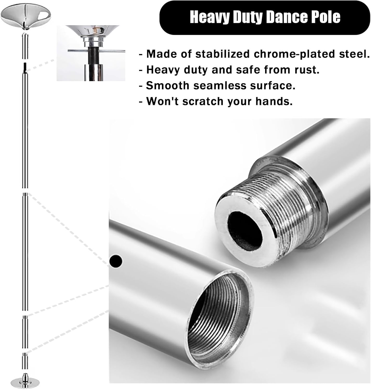 Barre de Pole Dance Portable en Argent, Extensible et Sécurisée pour Plafonds Élevés (Compétition, Statique/Spinning)