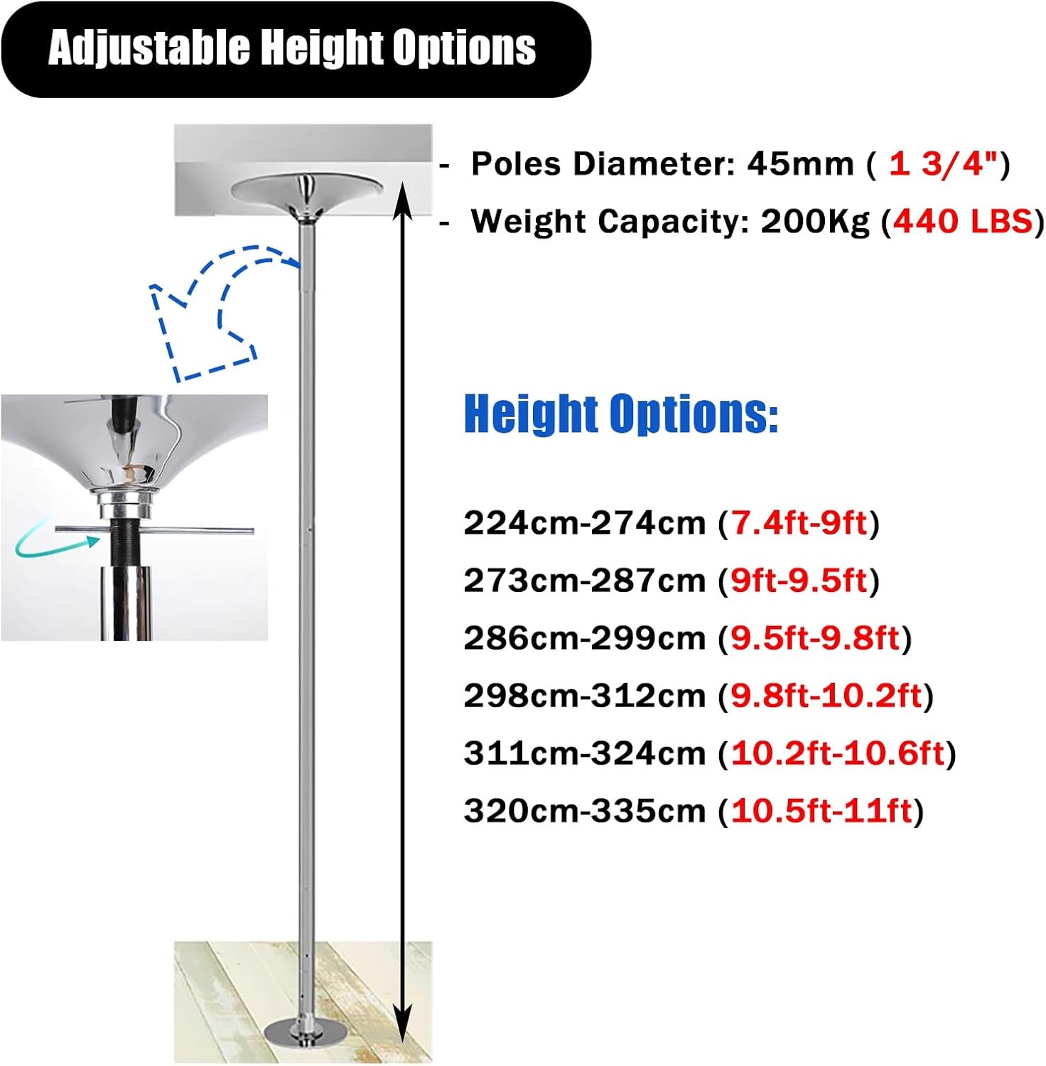 • Hauteur Réglable: De 224 cm à 335 cm (7,4 ft – 11 ft).