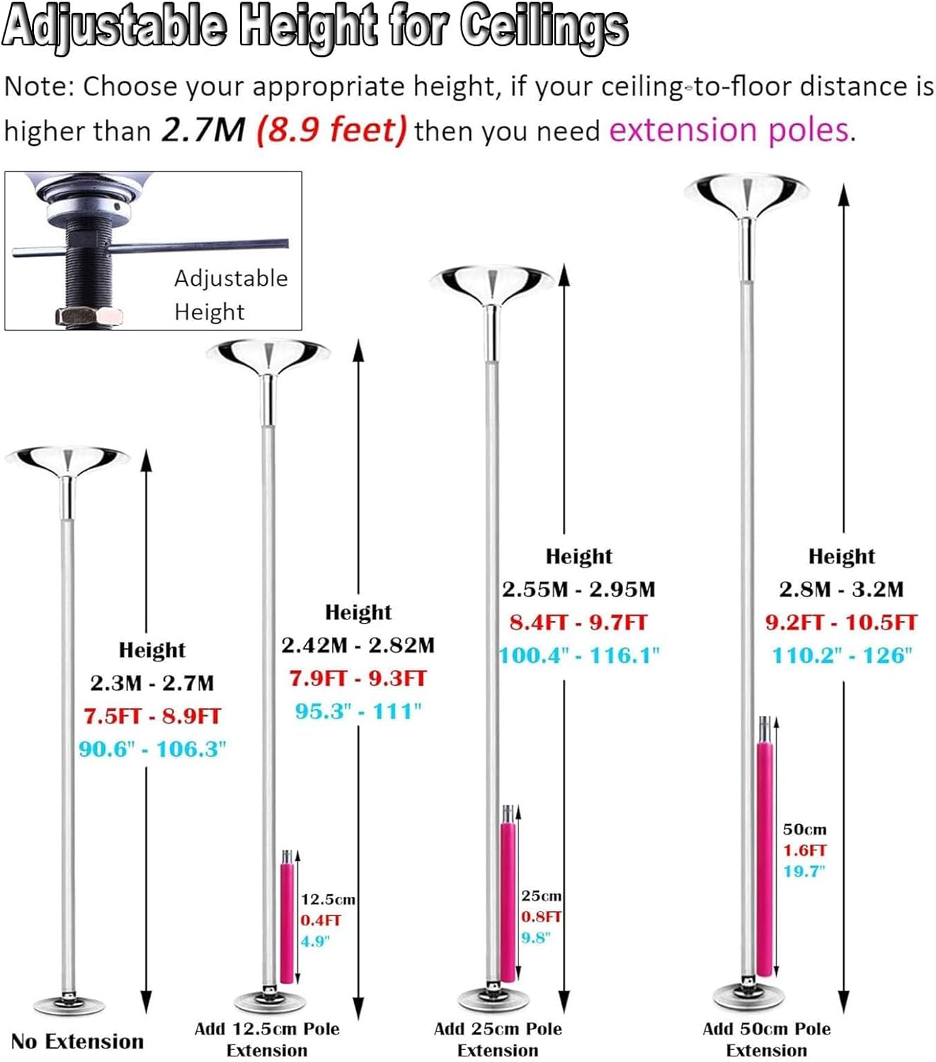 Oubliez les installations compliquées et les dégâts potentiels sur votre plafond et votre sol. Notre barre de pole dance est conçue pour un montage facile, sans besoin de perçage, de boulons ou de vis. Démontable en plusieurs pièces, elle est aussi simple à transporter qu’à ranger.