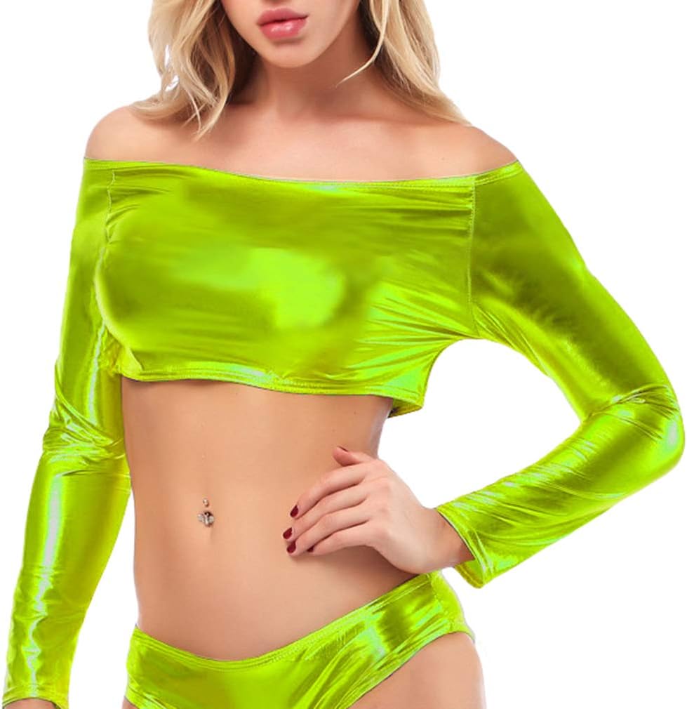 Débardeur Sexy PU Bronze À Manches Longues – Discothèque/Performance