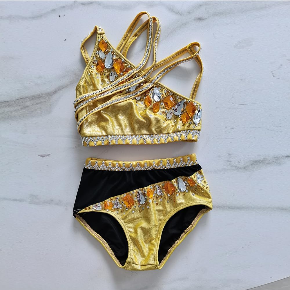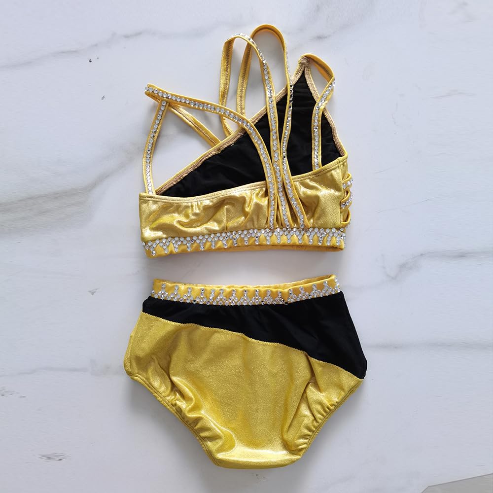 Ensemble Pole Dance Luxe Doré Deux Pièces Diamant Compétition