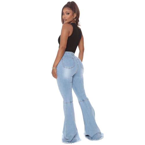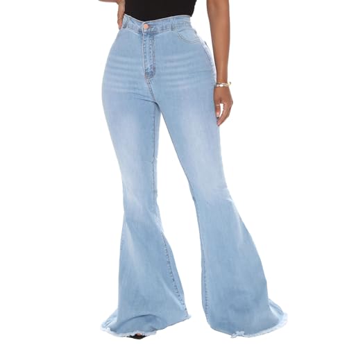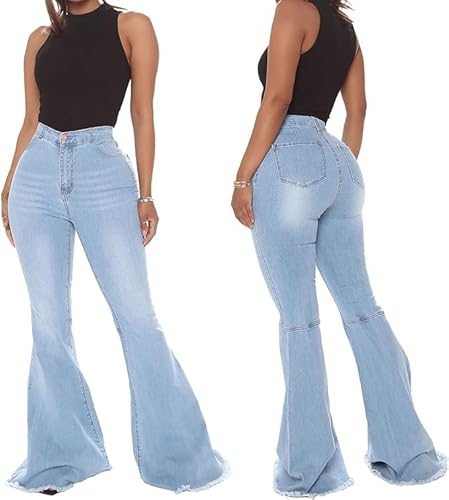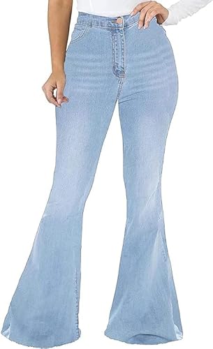 Jeans Baggy Femme Taille Haute Évasée Confortables – Bleu Clair avec Poches