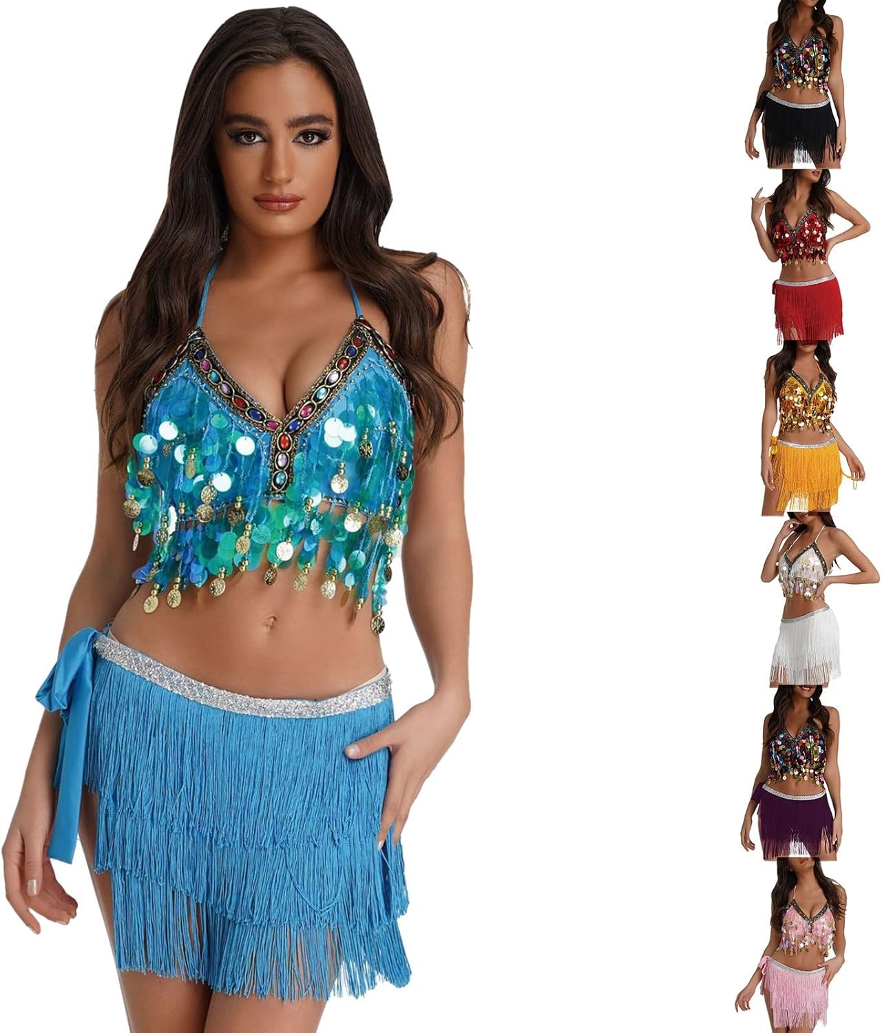 Jupe métallique à paillettes avec pompon – Costume de danse du ventre sexy femme