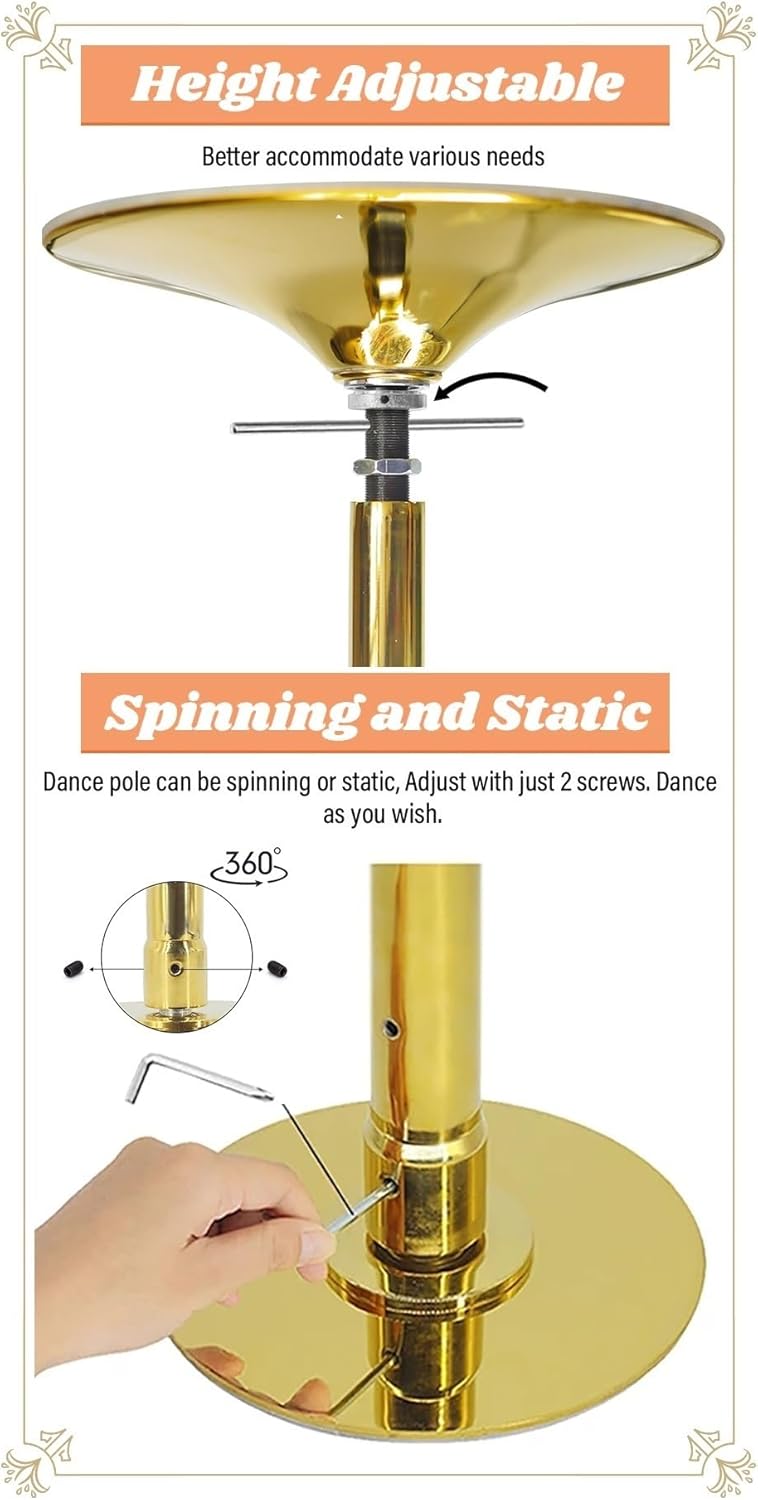 Conçue avec du métal de haute qualité, notre barre de pole dance dispose d’un diamètre de 45 mm et peut être ajustée à la hauteur souhaitée pour s’adapter parfaitement à votre espace et à vos besoins. -