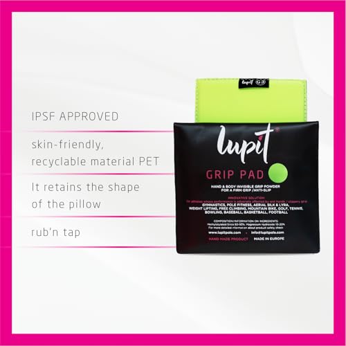 Le Lupit Grip Pad a reçu l’approbation de l’International Pole Sports Federation (IPSF), gage de qualité et d’efficacité. Ce produit est conçu pour traiter la surface de n’importe quelle barre de danse, qu’elle soit en acier inoxydable, chrome, laiton ou peinture en poudre. Le côté noir du coussin vise à accroître la friction, garantissant ainsi une adhérence optimale.