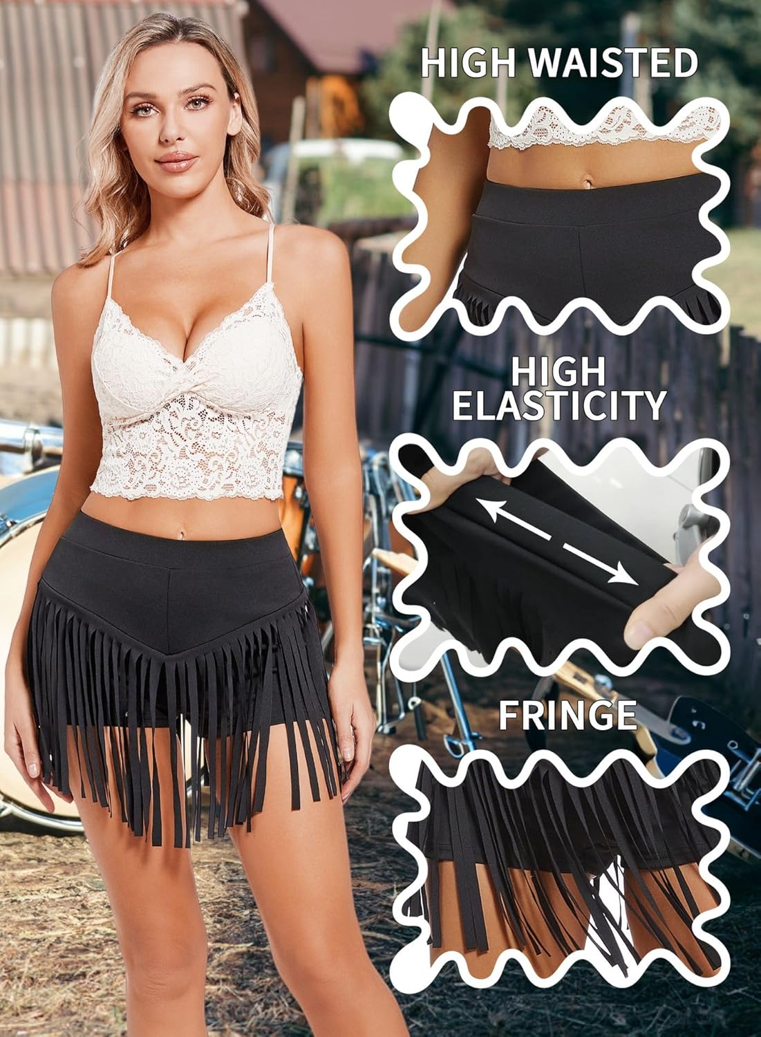 Mini Short Franges Femme – Sexy Été Concerts, Festivals, Pole Dance