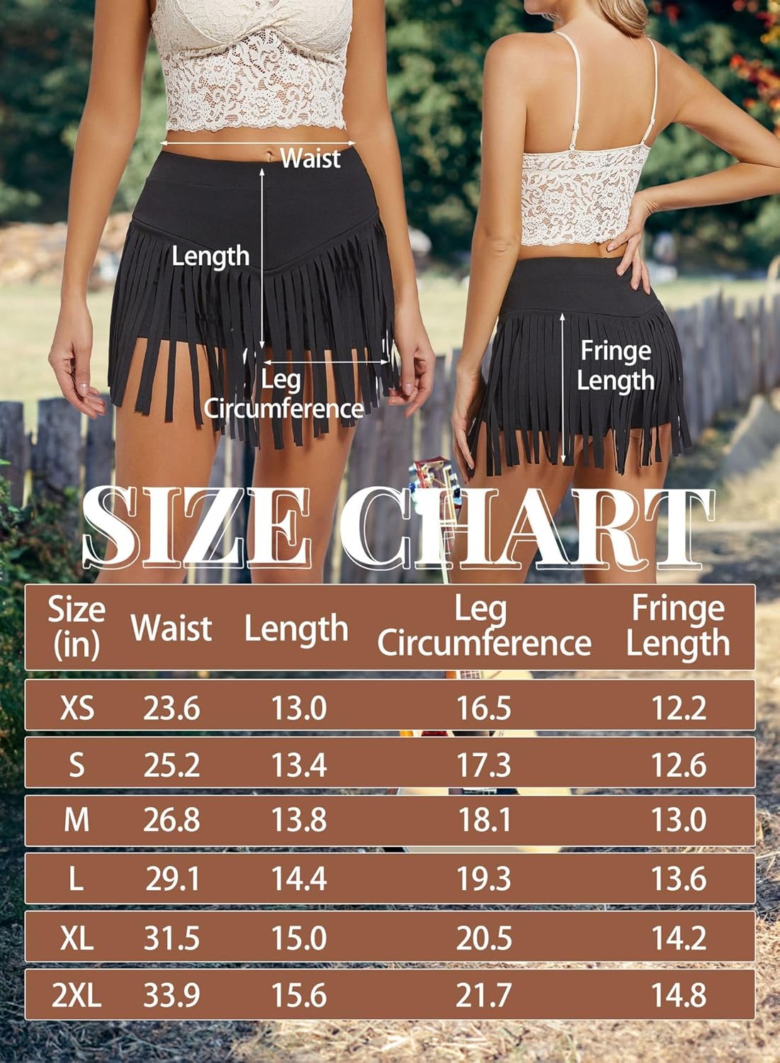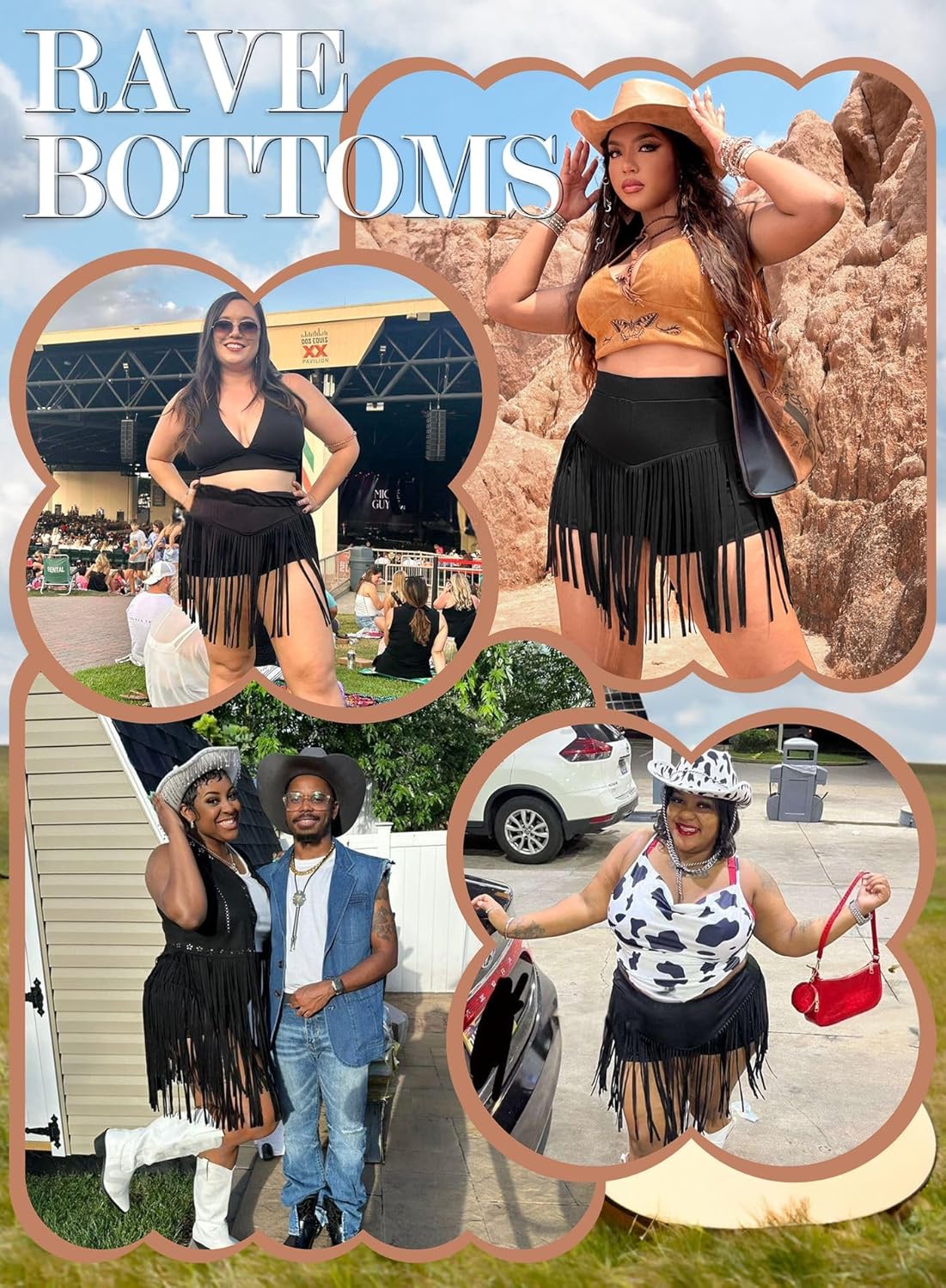 These shorts would be really cute for a summer festival. I was actually shocked about how flattering they looked on me. The size fits well and the tassels help hide some of the less desirable parts of my thighs. I love the way they swing around when I dance. These are meant to be danced in!