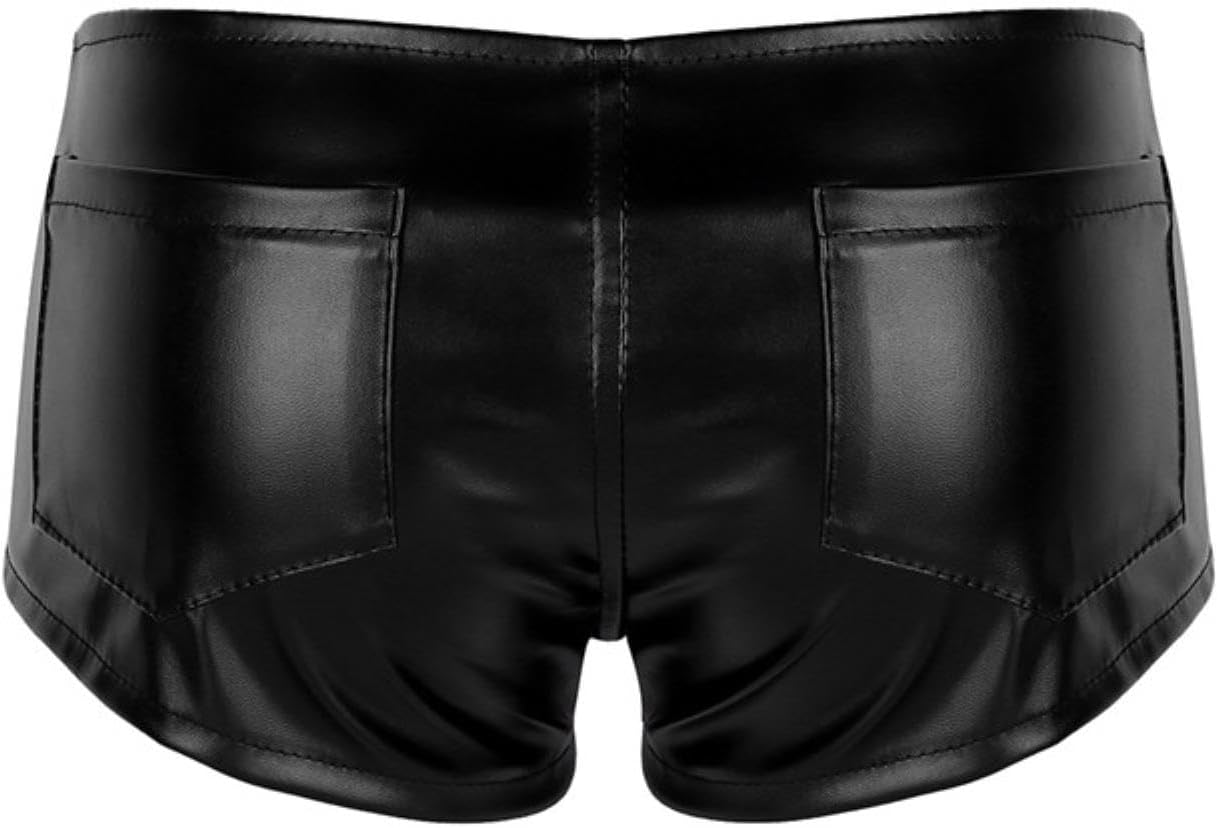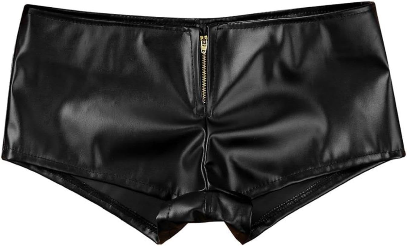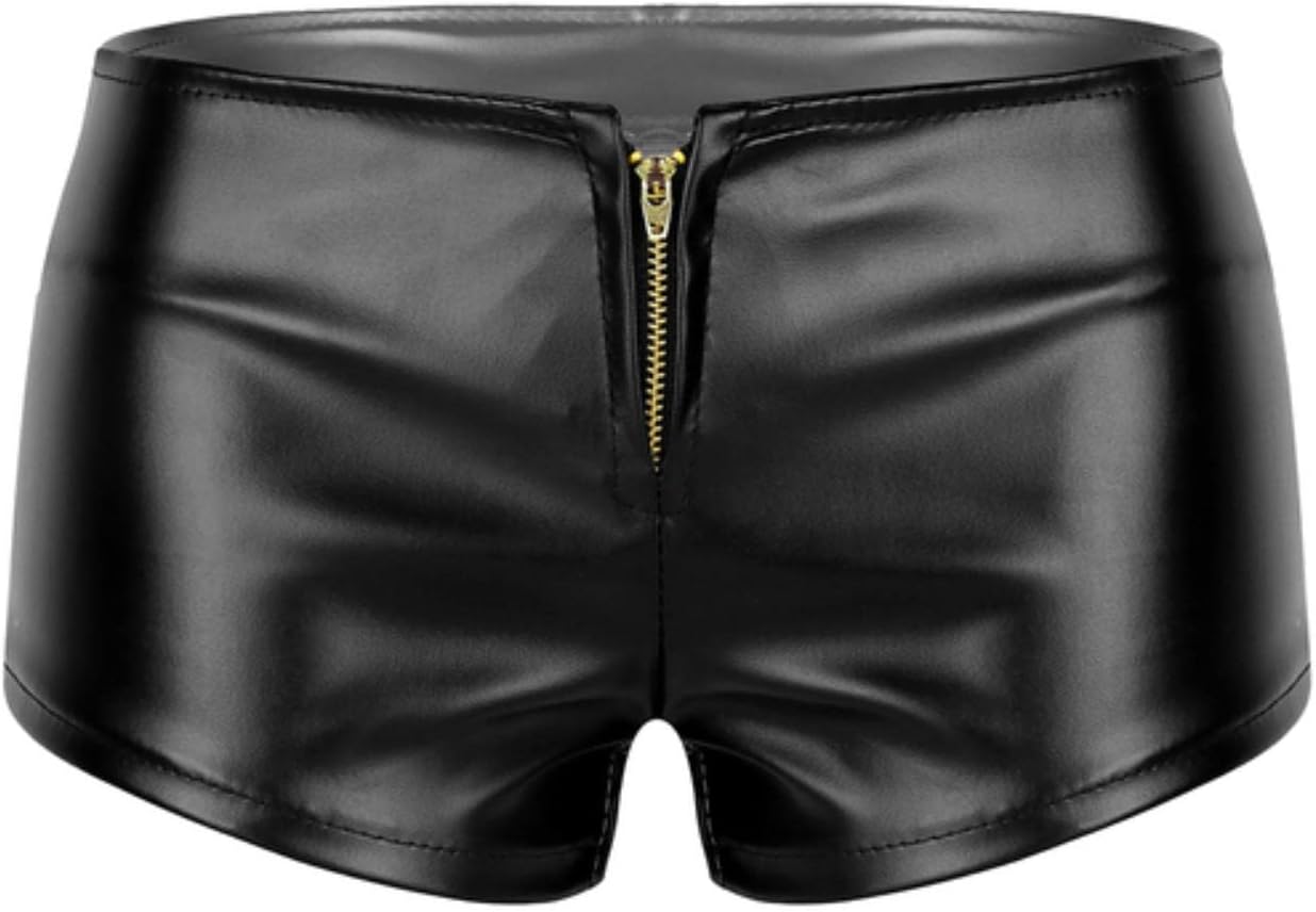 Mini Shorts Wet Look Noir en Cuir avec Fermeture Éclair – Taille S