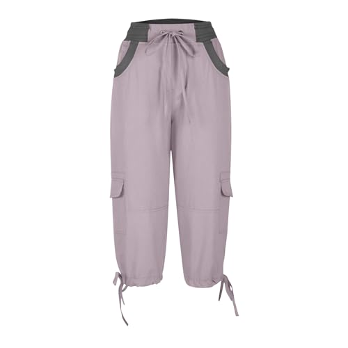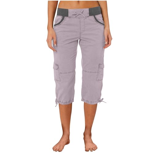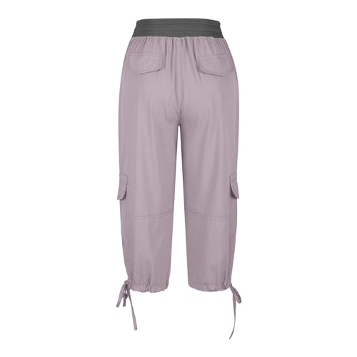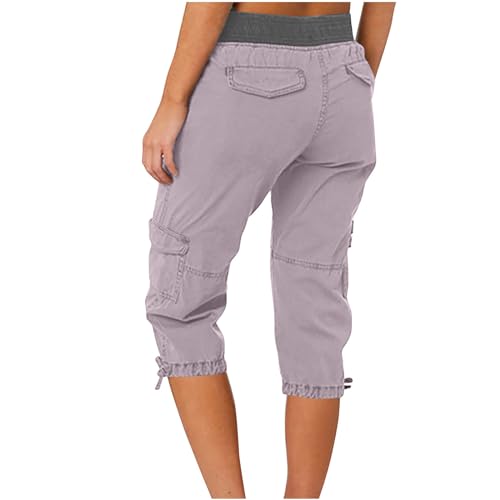 Pantalon Cargo Sport Femme Grande Taille Mauve – Capri Élastique avec Poches