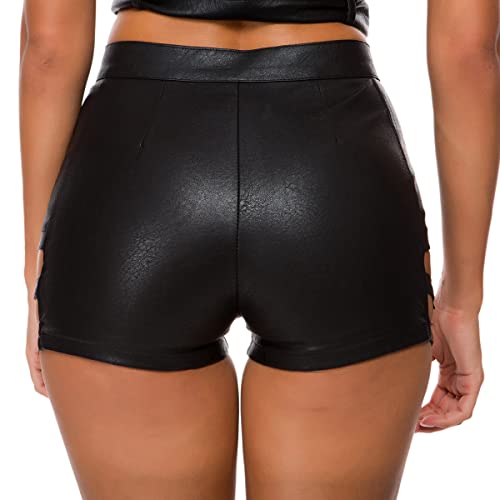Short court en cuir synthétique noir pour femmes – Taille haute, style gothique, sexy Clubwear