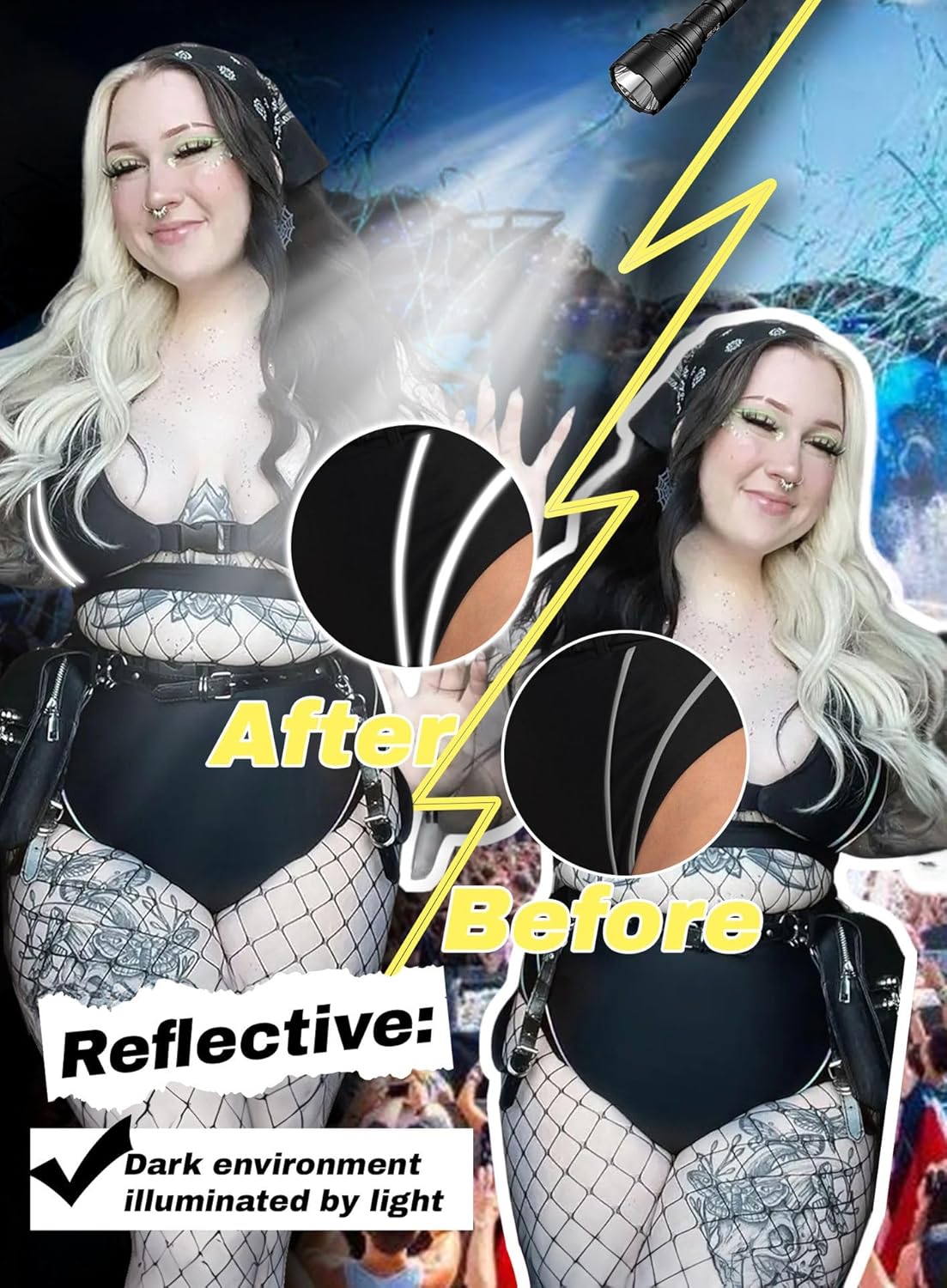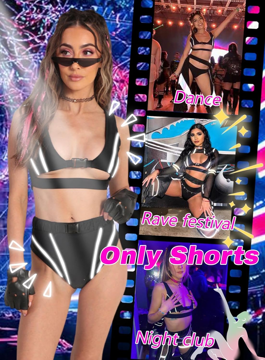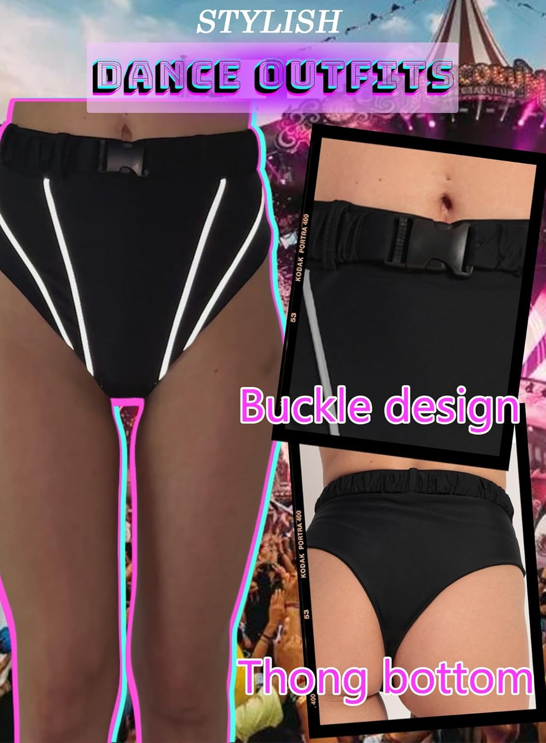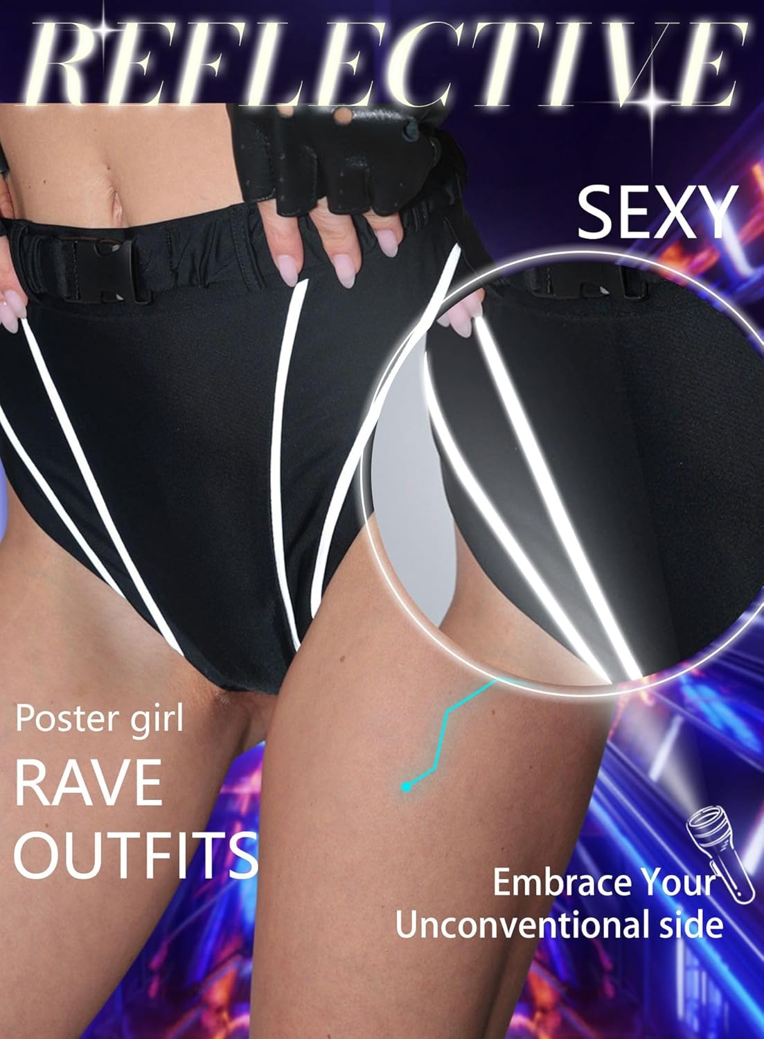 4 avis pour String réfléchissant taille haute avec boucle – Pantalon de pole dance EDC Festival