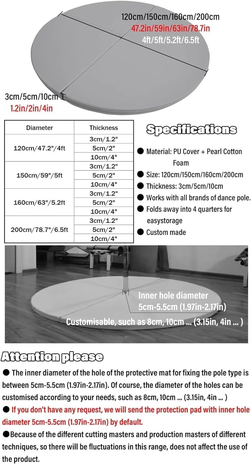 Tapis de Protection SAFWELAU pour Pole Dance et Yoga, Épaisseur 3/5/10 cm